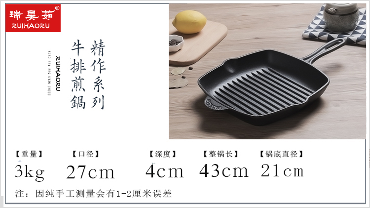 chinese Name: 经典P26牛排锅 ITEM NO.: T-018 package size:27*40*6cm packing: brown box weight:3.4KG