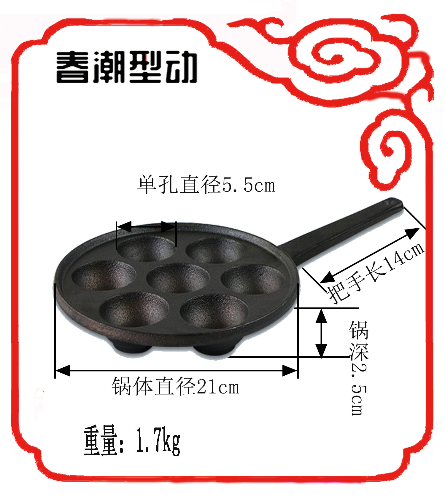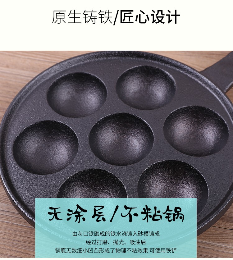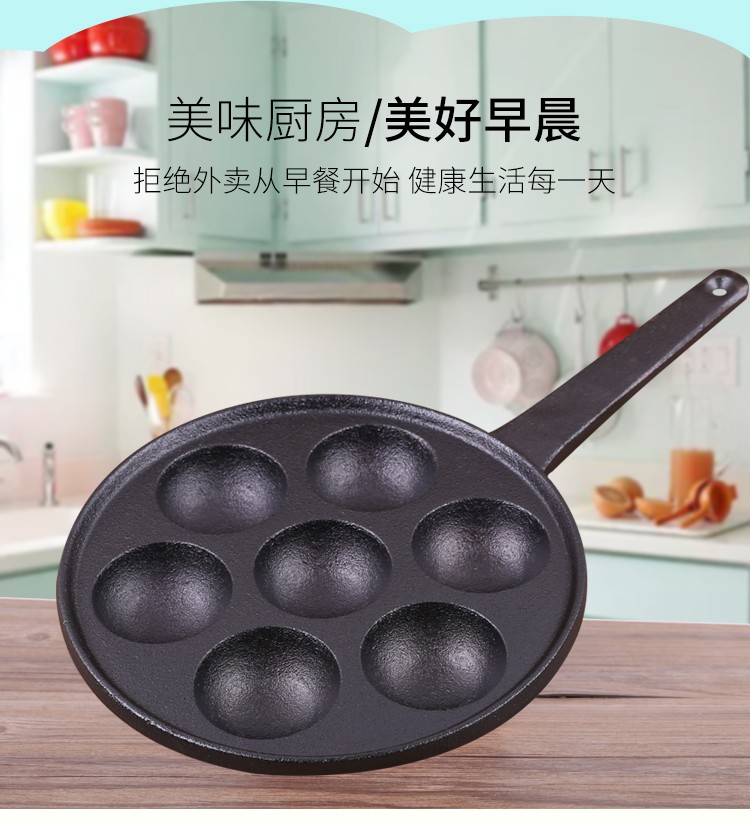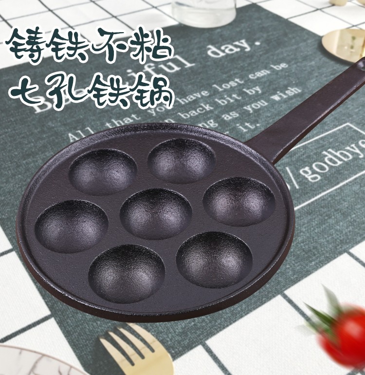 chinese Name: 铁把七孔丸子锅 ITEM NO.: T-014 package size: 24*24*10cm packing: brown box weight: 3.3KG